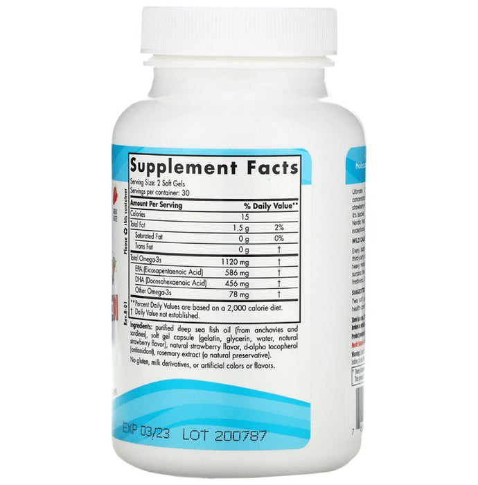 Nordic Naturals 12 to 18 Yrs Ultimate Omega 2x Teen Mini Soft gels for Brain Cells and Function Strawberry It is Nordic Natural’s most powerful oil yet. Ultimate Omega 2X features the highest-concentration omega-3 fish oil in triglyceride form (the form naturally found in fish), delivering superior absorption and maximum benefits. A third-party certified lab tests every batch of Nordic Naturals fish oils for environmental toxins, including heavy metals. All fish oils are in the triglyceride form and surpass the strictest international standards for purity and freshness. Optimal health with 1000 mg of EPA and DHA in each soft gel, this powerful concentrate meets a broad range of nutritional needs. Ultimate Omega 2X offers support for heart, brain and joint health and is ideal for anyone looking for omega-3s in their most bio-available form.