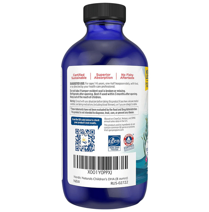 Nordic Naturals Children's DHA with Omega 3 offers delicious, flavoured liquid fish oil that supports brain development, learning, and a healthy nervous system. It is made from 100% wild Arctic cod. All the fish oil products are backed by science and are safe, sustainable, fresh and pure. Childhood is a critical time for the development of the brain and nervous system. It is also a time when optimising the child’s nutrition and ensuring a robust intake of the critical brain-building block DHA (found in cold-water fish) can be a challenge. This omega-3 oil offers potent amounts of DHA.