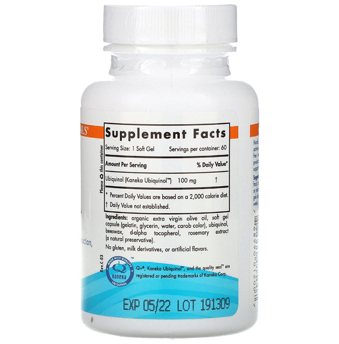 Nordic Naturals Coq10 Ubiquinol 100mg Soft Gels is a dietary supplement that contains 100mg of Coenzyme Q10 (CoQ10) Ubiquinol. CoQ10 is a fat-soluble molecule that is found in almost every cell, tissue, and organ in the body. It plays a crucial role in cellular energy production and acts as an antioxidant, helping to reduce free radicals in the body