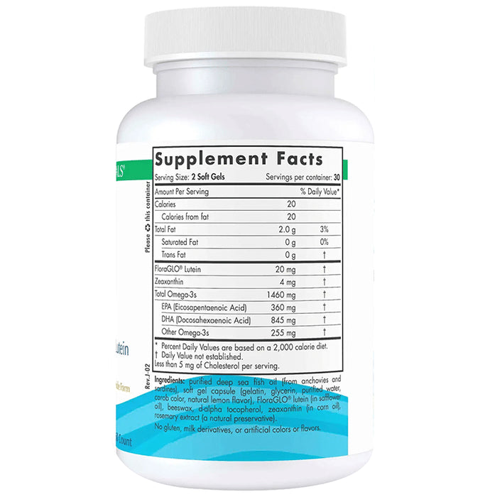 Composition : Purified Deep Sea Fish Oil (From Anchovies And Sardines), Soft Gel Capsule (Gelatin, Glycerin, Purified Water, Carob Colour, Natural Lemon Flavour), Floraglo Lutein (In Safflower Oil), Beeswax, D-Alpha Tocopherol, Zeaxanthin (In Corn Oil), Rosemary Extract (A Natural Preservative)