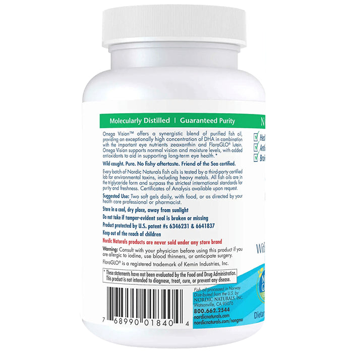 Nordic Naturals Omega 3 Vision 1460mg Soft Gels with Zeaxanthin & FloraGLO Lutein for Healthy Eyes and Vision is a dietary supplement specifically formulated to support healthy eyes and vision. The soft gels are enriched with Zeaxanthin and FloraGLO Lutein, which are natural carotenoids known for their beneficial effects on eye health and vision.