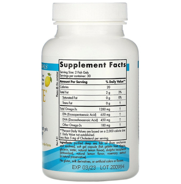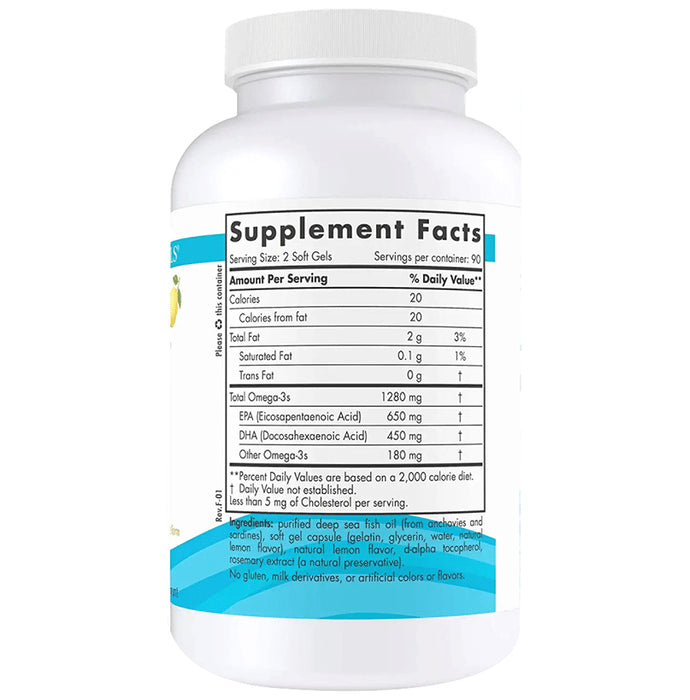 Composition : Purified Deep Sea Fish Oil (From Anchovies And Sardines), Soft Gel Capsule (Fish Gelatin From Tilapia, Glycerin, Water, Natural Lemon Flavour), D-Alpha Tocopherol (Antioxidant), Natural Lemon Flavour, Rosemary Extract (A Natural Preservative)