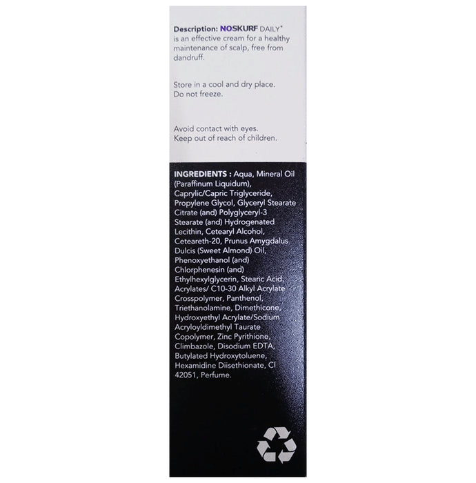 Noskurf Daily Cream is an anti-dandruff cream that helps strengthen weakened hair cuticles and make hair ultra soft and smooth. It helps to keep the scalp clean and revive dull hair.