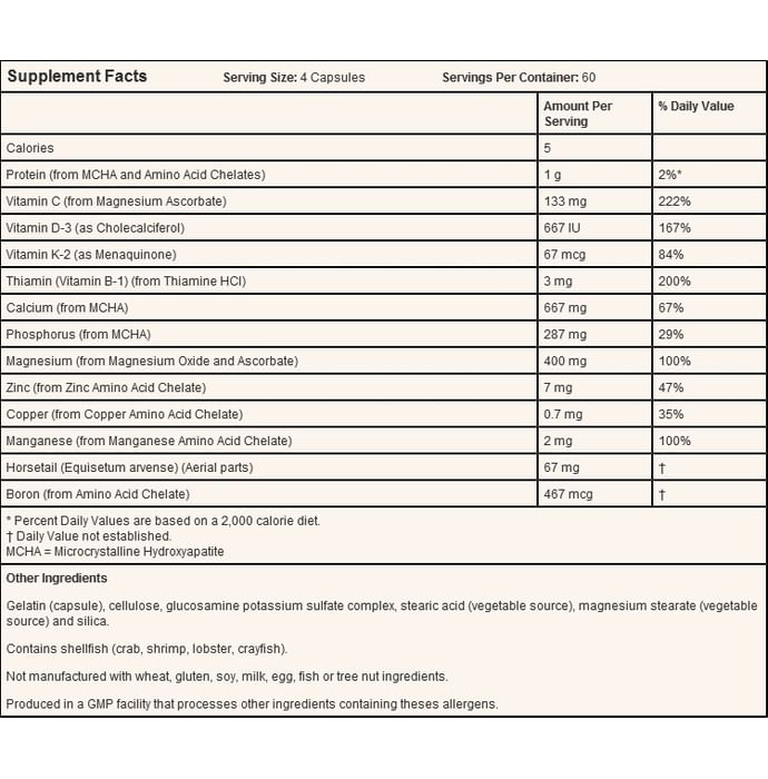 NOW Foods Bone Strength Capsule uses Microcrystalline Hydroxyapatite (MCHA) to strengthen bone and teeth. MCHA is a compound which makes up the crystalline matrix of bone and teeth and is the substance which makes the bone rigid. MCHA blended with vitamins and minerals improves and maintains bone health and strength.