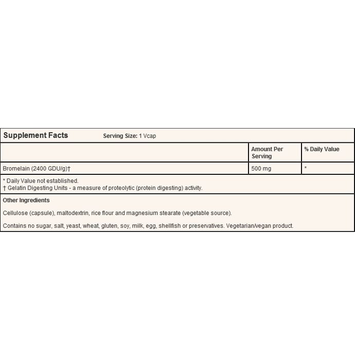 NOW Foods Bromelain 2400 GDU/500 mg Veg Capsule Bromelain is a proteolytic enzyme derived from the stem of the pineapple plant that has protein-digesting properties. When taken with food, Bromelain can help to support digestion. When taken between meals, it may help to support joint comfort and may help to relieve temporary soreness that is associated with muscle overuse. Bromelain is designed by nature to support healthy gastrointestinal function and may also help to promote the comfort of muscles and joints.