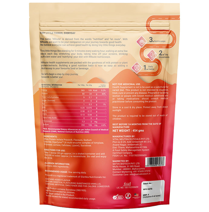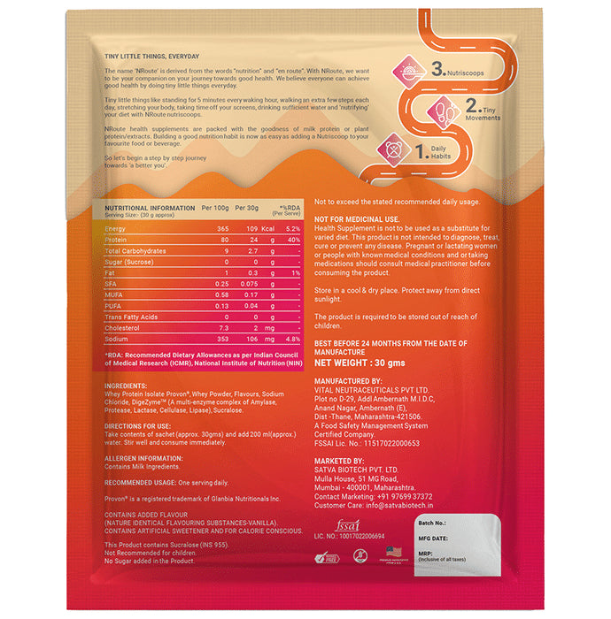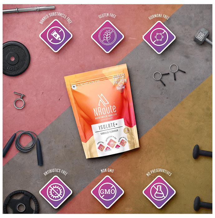 Nroute Isolate + Powder is 24g of protein per 30g serve, with an advanced absorption formula, that helps enhance muscle growth and strength. As Isolate+ contains more protein, fewer fats and carbohydrates than whey protein concentrate, it assists digestion of protein for those having mild issues with its consumption. Infused with DigeZyme®, Isolate+ improves efficiency in absorption of essential nutrients, eventually providing an opportunity towards maintaining good overall health.