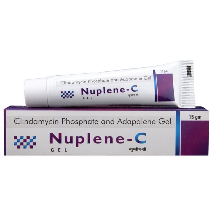 Nuplene-C Gel is a combination of two medicines: Adapalene and Clindamycin, which treats pimples (acne). Adapalene is a form of vitamin A which prevents accumulation of the sebum (skin’s natural oil), unblocks the pores and allows natural exfoliation of the outer layers of skin. Clindamycin is an antibiotic which works by penetrating into the skin and killing acne-causing bacteria.