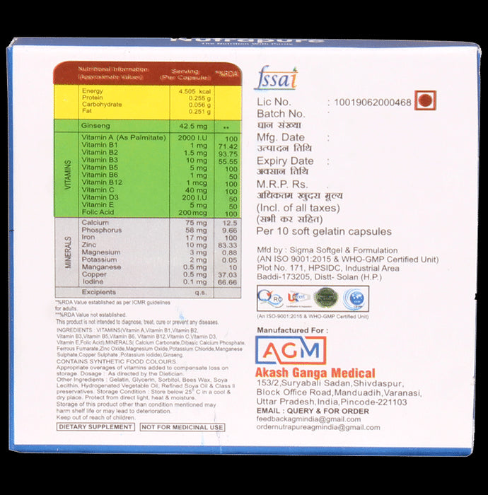Nutrapure Multivitamin, Multimineral with Ginseng & Antioxidants Softgel Capsule (10 Each)