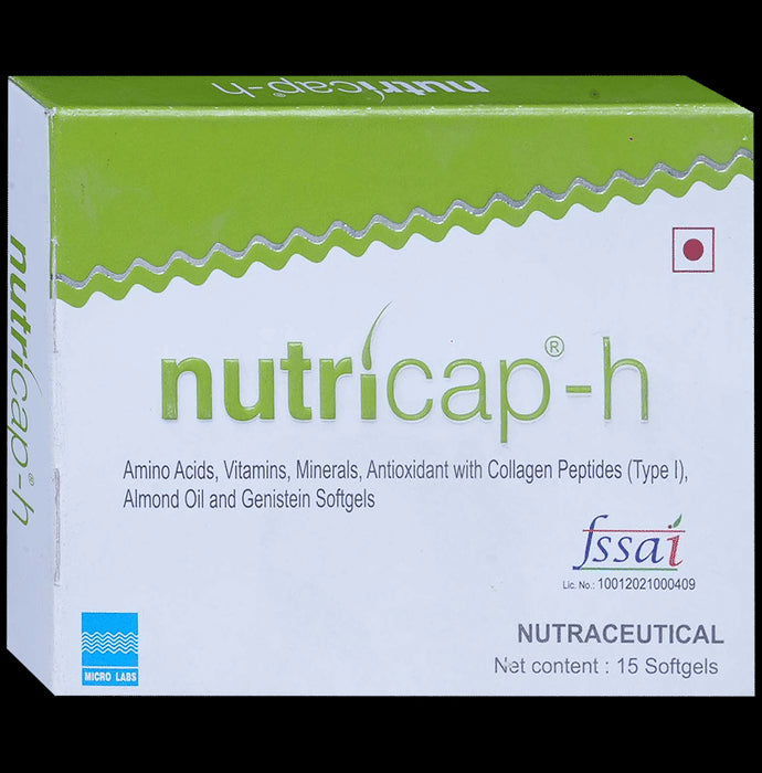 Nutricap-H Softgel Capsule is a hair health supplement formulated with natural extracts and oils, vitamins, minerals, and amino acids to help support hair growth and reduce hair fall. The ingredients protect the hair from sun damage and environmental damage. The capsules provide the nourishment required for improving hair strength and growth.