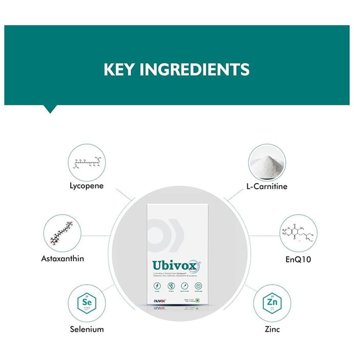 Nuvox Ubivox Tablet Sugar Free is a health supplement for men and women to help improve energy levels and support the functions of the reproductive system. Ingredients such as selenium which is a micronutrient, are essential for several functions, and zinc has been found to be a component of more than 200 enzymes that are involved in the synthesis of proteins.