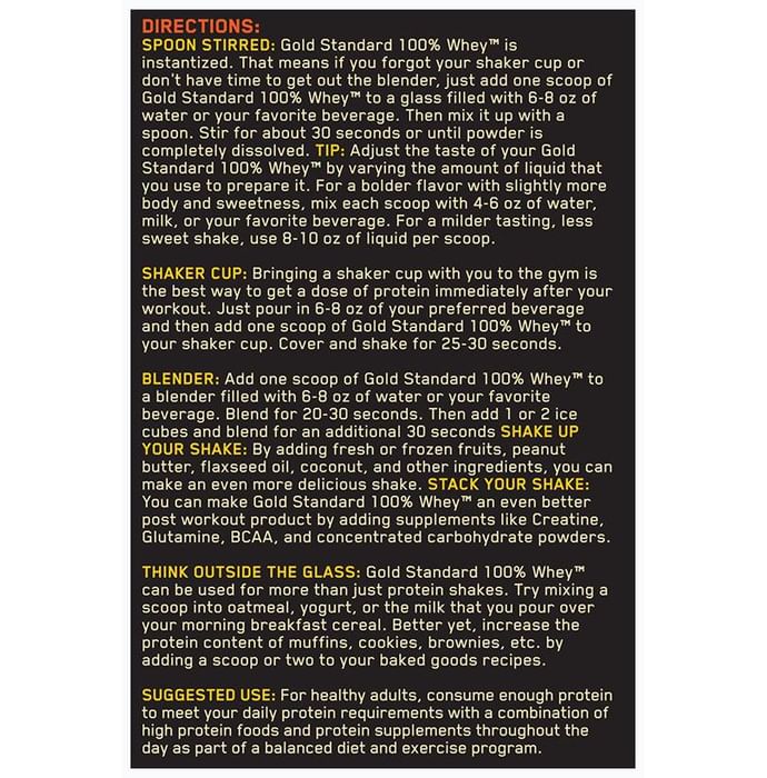 Optimum Nutrition (ON) Gold Standard 100% Whey Protein Isolate Powder Double Rich uses pure whey protein isolate as the primary ingredient. Combined with ultra-filtered whey protein concentrate, each serving provides 24 grams of all-whey protein and 5.5 grams of naturally occurring branched-chain amino acids (BCAAs), prized by athletes for their muscle-building qualities.Product Net Weight: 454g