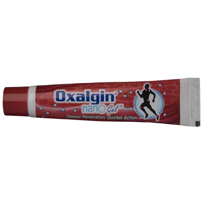 Oxalgin Nano Gel is a pain-relief gel formulated with diclofenac, methyl salicylate, and menthol which can help provide relief from pain, swelling, and inflammation caused due to arthritis, low back pain, neck pain, shoulder pain, sports injury, sprains, and strains.