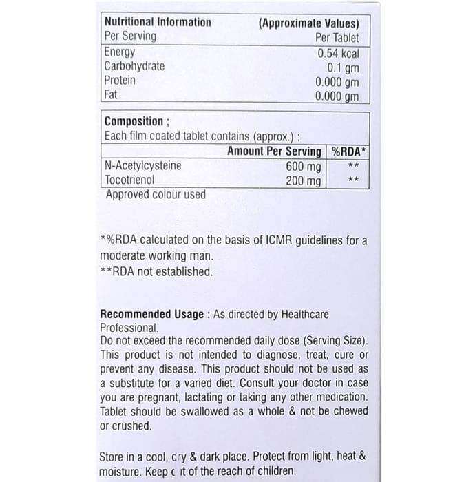 Oxebrain Tablet is a health supplement with N-acetylcysteine and tocotrienol. N-acetylcysteine is a semi-essential amino acid that helps replenish antioxidants in the body and nourishes the brain. Tocotrienol has neuroprotective and cholesterol-lowering properties.