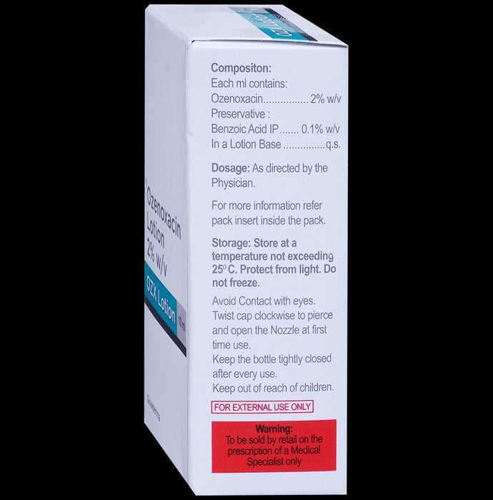 Ozx Lotion is a quinolone antimicrobial medicine. It enters into the bacterial cells and inhibits the bacterial enzymes which are required for the multiplication of the bacterial genetic material (DNA). It is mainly active against the bacteria causing skin infections.