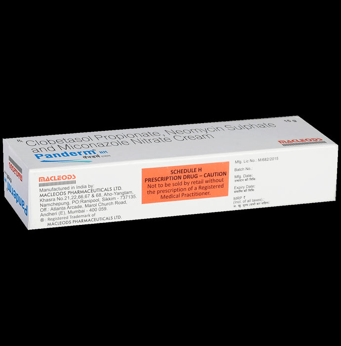 Panderm NM Cream is a combination of three medicines: Clobetasol, Miconazole and Neomycin, which treats skin infections. Clobetasol is a steroid medicine. It blocks the production of certain chemical messengers (prostaglandins) that make the skin red, swollen and itchy. Miconazole is an antifungal which stops the growth of fungi by preventing them from forming their own protective covering. Neomycin is an antibiotic. It stops bacterial growth by preventing the synthesis of essential proteins required by the bacteria to carry out vital functions.