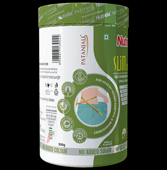 Patanjali Nutrela Slim Choice Powder is a meal replacement which contains whey protein, bio-fermented vitamins and permitted botanical extract. It contains bio-fermented vitamins and 25 micronutrients. It helps manage appetite and weight management. It helps manage sugar cravings, improve insulin sensitivity and boost metabolism.
