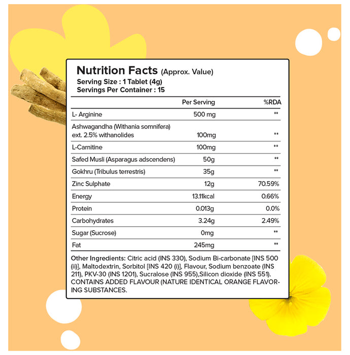 Composition : L-Arginine,Ashwagandha,Safed musli,Zinc