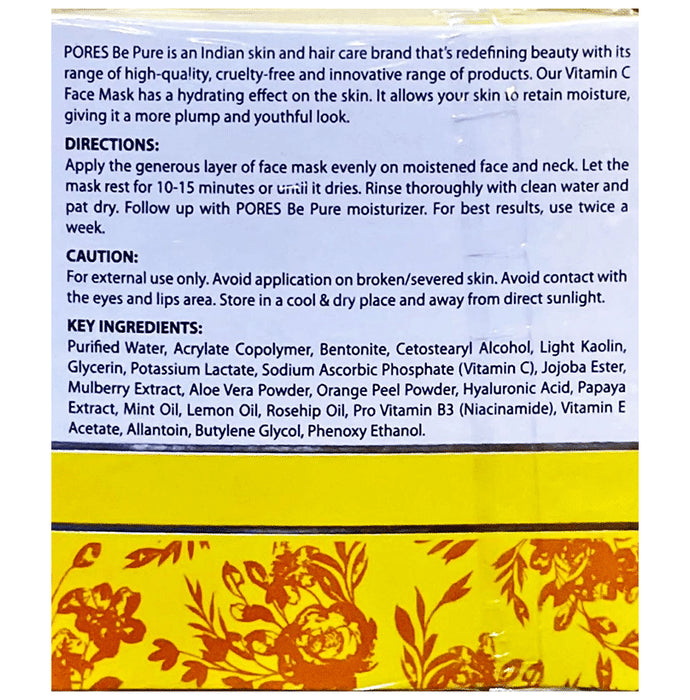Pores Be Pure Vitamin C Face Mask Pores be Pure Vitamin C face mask works as a natural management mask that features a super-dose of vitamin C, aloe vera and many other natural ingredients to detoxify pores and fade hyperpigmentation, blemishes and acne scarring. It naturally soothes out rough skin, brightens the complexion and lightens persistent dark circles.