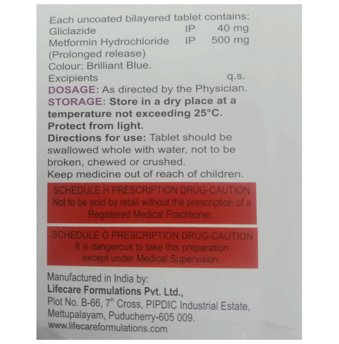 Composition : Gliclazide (40mg) + Metformin (500mg)