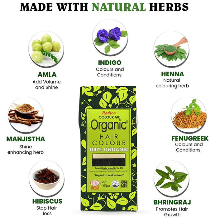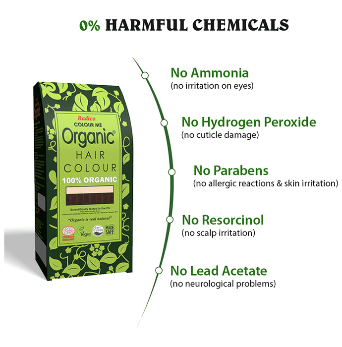 Radico Colour Me Organic Golden Blonde Hair Colour is a revolutionary hair dye crafted with the expertise of our scientists and henna specialists in the state-of-the-art laboratory. It is specially tailored for Indian hair types, providing 100% grey coverage with no ammonia, which is known to damage the hair cuticle, leaving your hair dry and brittle over time. Instead, natural ingredients are used such as henna, amla, bhringraj, brahmi, and rose petals to nourish and colour your hair naturally. It is the perfect solution for those looking for a natural and safe way to enhance their hair colour.