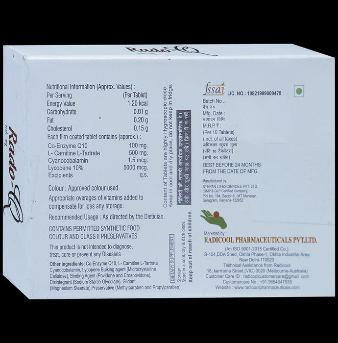 Rado-Q Tablet is a comprehensive supplement that offers multiple benefits for the body. With its key ingredient, co-enzyme Q10, it acts as an antioxidant, protecting cells from damage caused by free radicals. Together, these ingredients contribute to a speedy recovery and enhance overall bodily health.