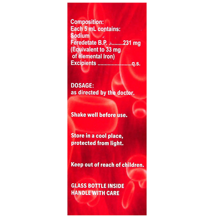 Redihealth Syrup contains sodium feredetate. Sodium feredetate contains iron that is combined with a chemical called EDTA to make sodium feredetate. This is an unionised form of iron and not an iron salt. Sodium feredetate breaks down in the gut and releases the iron, which is then absorbed by the body. This unionised form of iron is less likely to cause stomach upsets or discolour teeth than that of iron supplements that contain iron salts, like ferrous sulfate.