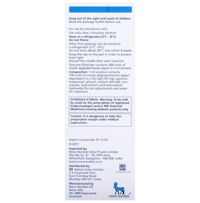 Composition : Insulin Degludec (2.56mg) + Insulin Aspart (1.05mg)