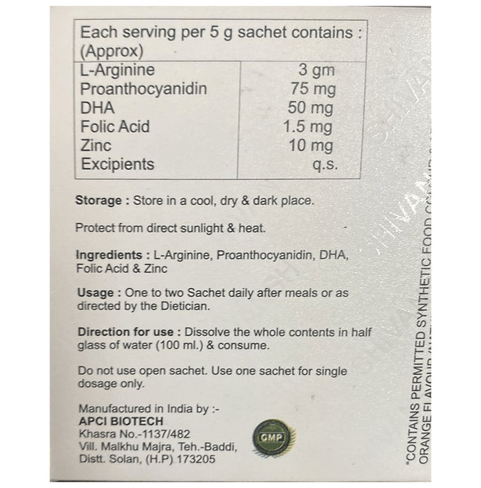 Composition : L-Arginine,Proantocyanidin,DHA,Folic acid,Zinc
