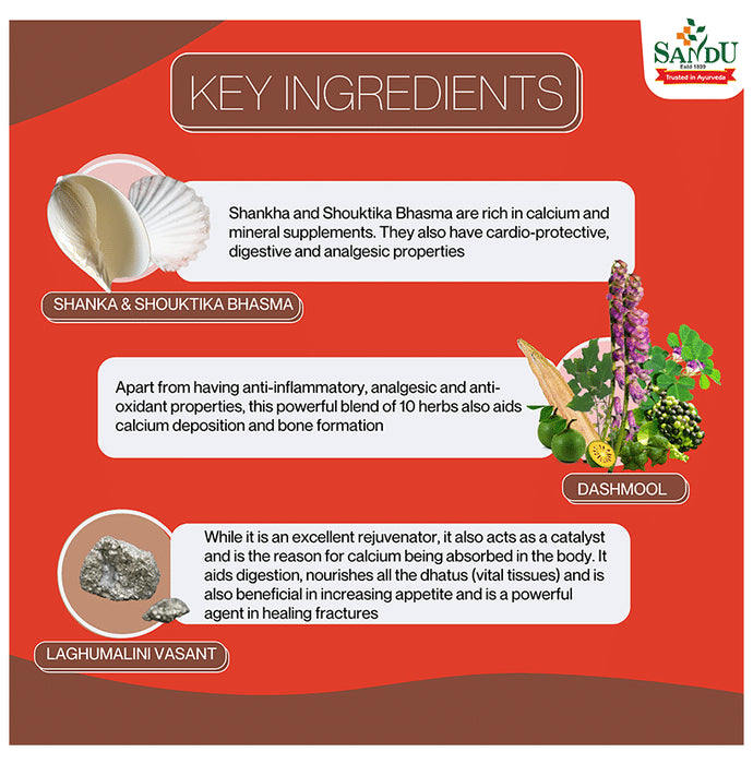 Sandu Osteon-D Tablet is a multifactorial calcium supplement. It is the best source of natural calcium and zinc for the nourishment of bones. It is also beneficial in preventing degeneration of bones density during menopause and old age.