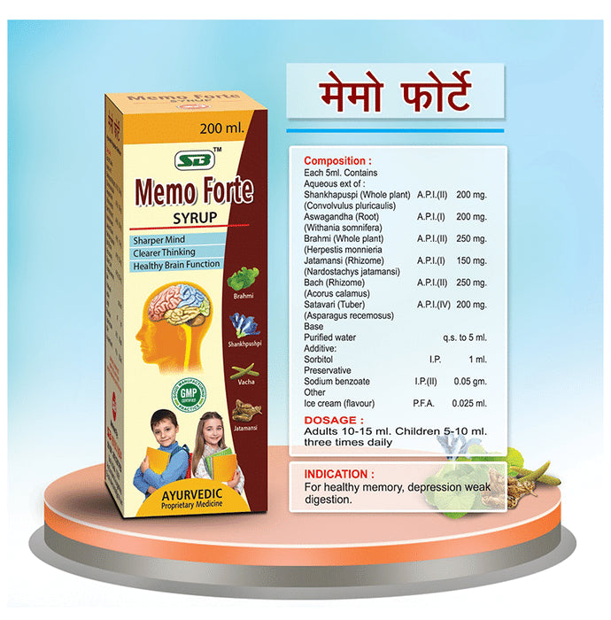 SB Memo Forte Syrup is enriched with withania somnifera, bacopa monnieri, shankhpushpi and shatavri for healthy memory, stress and weak digestion.