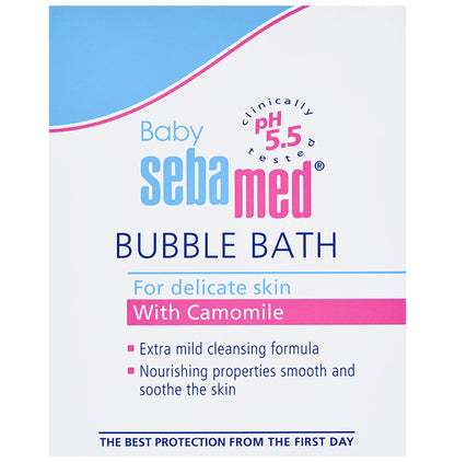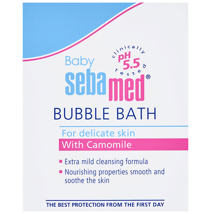 Sebamed Baby Bubble Bath has a pH of 5.5 and has extra mild sugar-based cleanser. It is a mild foaming bath additive with cleansing properties. It strengthens the resistance of baby skin with a physiological pH of 5.5. At pH 5.5, the skin barrier remains intact and lipid and moisture loss is minimal. It also restricts the growth of pathogenic bacteria. This baby bubble bath has chamomile, which soothes irritated skin and has antibacterial properties. The combination of active ingredients causes no irritation to the eyes.Key Benefits:The bubble bath has an extra mild tenside complex for gentle cleansing action without dehydrating the skinIt supports the skin’s natural lipid balanceThe natural moisturising agents protect against drynessAllantoin in the formulation makes the skin soft and smoothGood to Know:Has an ideal pH level of 5.5No-tears formulaBest Suited For:Delicate skin of babiesIdeal For:BabiesProduct Form:LiquidContainer Type:Flip cap bottleArea of Application:BodyConcern:Skin hydrationGermsDirections for Use:Use sparinglyPut a couple drops of the product into the baby bathAdd warm water to create some foamWash the baby with caressing strokesSafety Information:Read the label carefully before useStore in a cool placeKeep out of reach of childrenAvoid contact with the eyes and rinse with a lot of water should this happenQuick Tips:Pat dry the baby’s skin after washing to avoid irritation and inflammation.