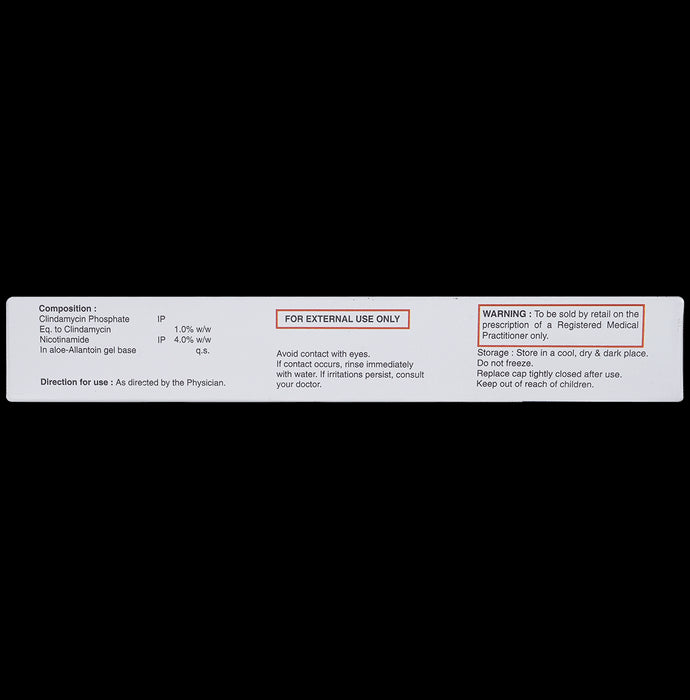 Composition : Allantoin (0.5% w/w) + Clindamycin (1% w/w) + Niacinamide (4% w/w)