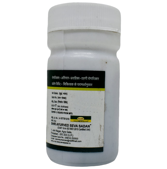 Seva Sadan Kutjghan Vati is an Ayurvedic herbal supplement that is primarily used for the management of intestinal infections such as diarrhoea, dysentery and irritable bowel syndrome. The tablets contain a blend of natural herbs, including Kutaja (Holarrhena antidysenterica) and Guduchi (Tinospora Cordifolia), which are traditionally used in Ayurvedic medicine to support digestive health and treat various gastrointestinal disorders.