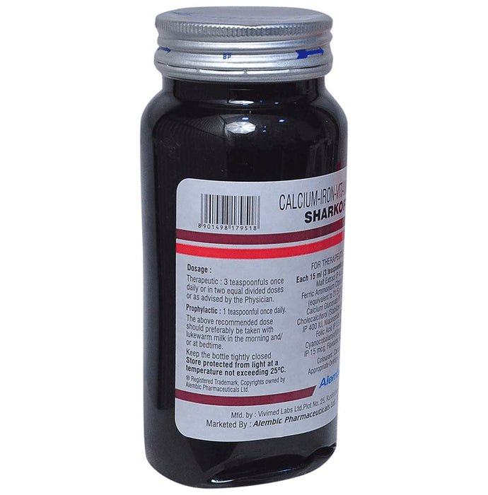 Sharkoferrol Syrup is a dietary supplement that contains calcium, iron, and vitamins as ingredients. It acts as a supplement to manage or prevent vitamin deficiency due to poor diet, certain illnesses, or during pregnancy. Vitamins are important building blocks of the body and help keep you in good health.