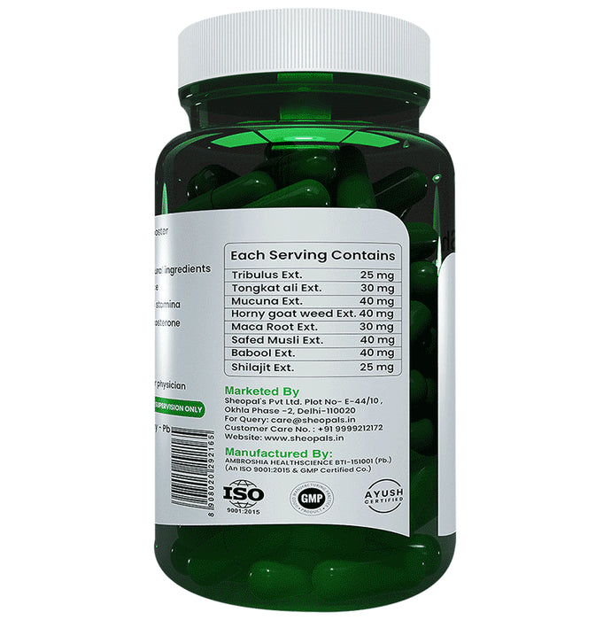 Composition : Tibullus extract, tongkat ali, mucuna, horny goat weed, maca root extract, shilajit, safed musli.