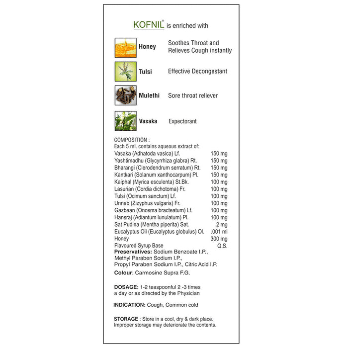 Shree Dhanwantari Kofnil Syrup Kofnil syrup is an effective cough syrup with honey is a natural approach against coughing. It can help to condition sore throat and throat infections.