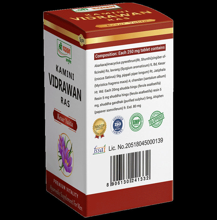 Shri Chyawan Tablet Kamini Vidrawan Ras Shri Chyawan Ayurveda has formulated Kamini Vidrawan Ras Tablet, an ayurvedic formulation renowned for its potential to enhance male reproductive health, stamina, and vitality. It is an excellent Ayurvedic formula that helps reduce stress and anxiety. This formula might help improve libido as well.