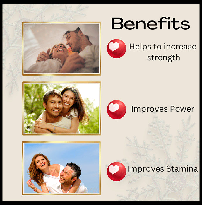 Sixxer Capsule Gold is an Ayurvedic capsule that helps maintain vitality. It helps in maintaining stamina and performance.Key Benefits:Regular consumption of these capsules helps boost vitality and staminaThe capsules contain Ayurvedic ingredients that help improves mobilityThe formulation helps in better performanceDirections For Use:Take two capsules the night before bed, with a glass of lukewarm milk.Safety Information:Read the label carefully before useStore in a cool and dry place, away from sunlightKeep out of reach of children