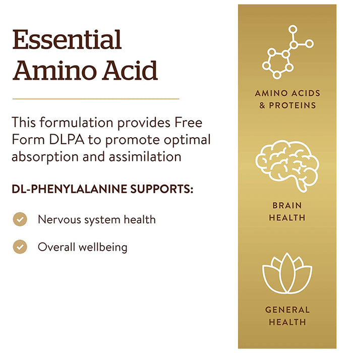 Solgar DLPA DL-Phenylalanine Vegetable CapsuleIt is a dietary supplement formulated to support nervous system health and overall well-being.Phenylalanine is an amino acid which exists in two forms. It may help to reduce the activity of the enzyme enkephalinase in the central nervous system, thereby sparing feel-good hormones such as endorphins and enkephalins. This formulation provides free form of DLPA to promote optimal absorption and assimilation.