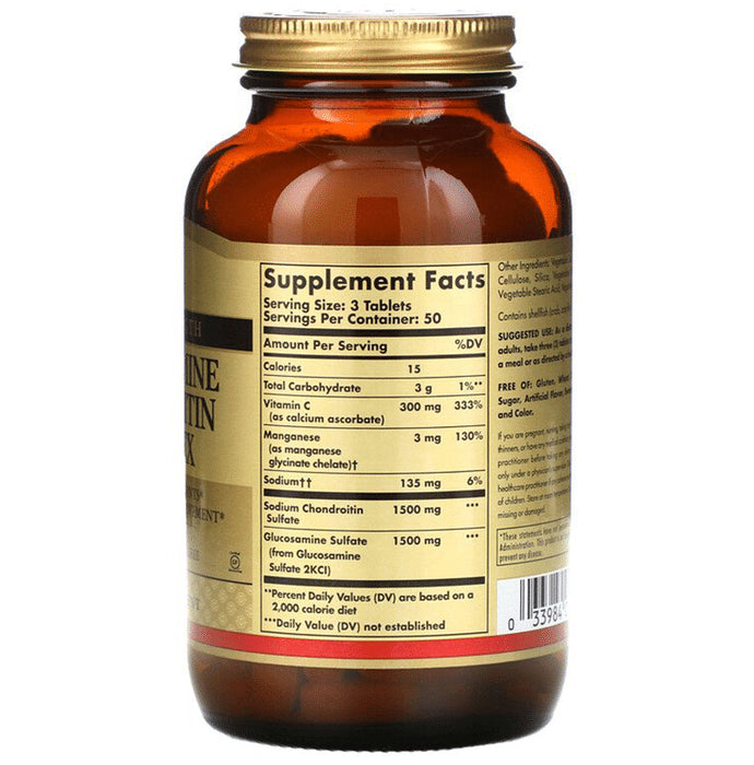 Solgar Glucosamine Chondroitin Complex Tabletis a supplement that contains glucosamine, a nutrient that aids in joint health and supports the structure of healthy joints. It contains chondroitin, a nutrient that promotes mobility and flexibility. Moreover, it has vitamin C necessary for the synthesis of collagen, a protein required to create tendons and ligaments. It also aids in the development of healthy cartilage components due to the presence of manganese.