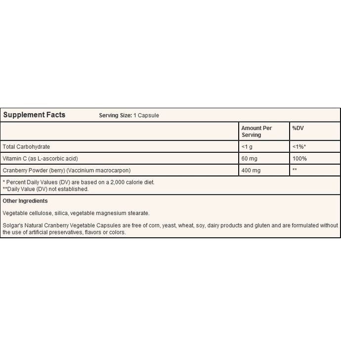 Solgar Natural Cranberry with Vitamin C Vegetable Capsule