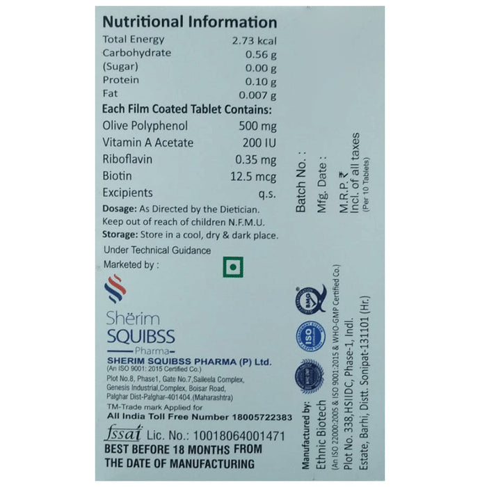 Composition : Olive polyphenols,Vitamin A acetate,Riboflavin,Biotin