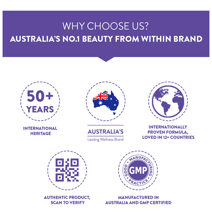 Composition : Hydrolysed Collagen, Disintegrant (Croscarmellose Sodium), Hyaluronic Acid, Calcium Ascorbate Dihydrate, Bulking Agent (Microcrystalline Cellulose), Anti-Caking Agent (Silicon Dioxide), Glidant (Magnesium Stearate), Thickener (Hyprolose), Coating Agent (Polyvinyl Alcohol), Beta Carotene, Solvent (Polyethylene Glycol) Natural Colour (INS 171), Anti-Caking Agent (Talc), D-?-Tocopheryl Acid Succinate, Copper Gluconate, Glazing Agents (Carnauba Wax, Hydroxypropyl Methylcellulose), Natural Colour (INS 172(Ii)).
