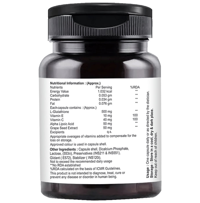 Composition : L-glutathione,Vitamin E,Vitamin C,Alpha lipoic acid,Grape seed extract