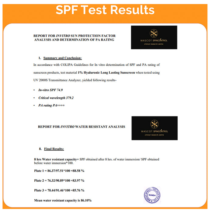 The Derma Co 1% Hyaluronic Long Lasting Sunscreen SPF 50 PA++++ is designed to help provide up to 6 hours of sun protection without the need for reapplication. Formulated with Heat Shield Technology, it helps shield the skin from UVA/UVB rays and external aggressors, making it suitable for everyday use.