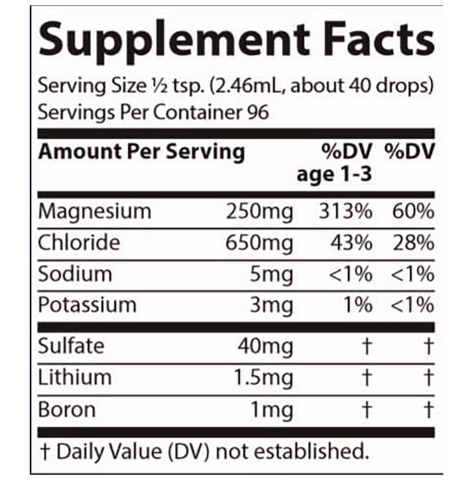 Composition : Magnesium,Chloride,Sodium,Potassium,Sulfate,Lithium,Boron