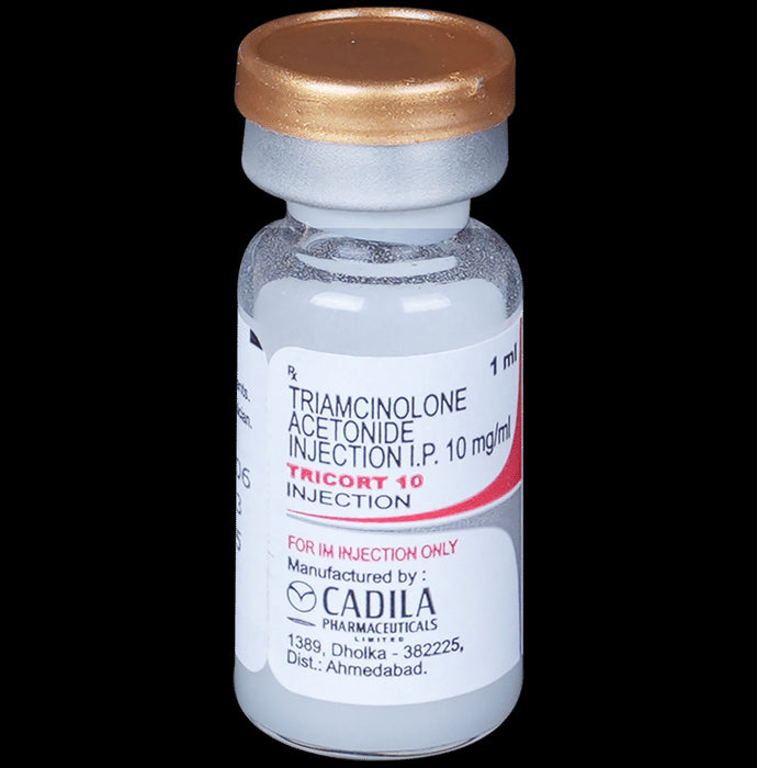 Tricort 10 Injection is a steroid. It is used for the treatment of a wide variety of medical conditions such as osteoarthritis and rheumatic disorders. It provides relief by preventing the release of substances that cause inflammation and by suppressing the immune system. Tricort 10 Injection is generally administered by a doctor or a nurse. You should not self-administer this medicine at home. Get the injection regularly at the same time each day to get maximum benefits from it. It is important to keep using the medicine regularly until your doctor tells you it is safe to stop.This medicine may cause a few side effects such as infection, headache, or injection site reaction. Talk to your doctor if you are worried about side effects or they do not go away. This medicine may make you more susceptible to viral infections, so you should stay away from people who have these infections. In general, you should try to avoid situations that make your symptoms worse (things like pollen and dust mites) and it is best not to smoke.Before starting to use Tricort 10 Injection you should let your doctor know if you are pregnant or breastfeeding. If you use this medicine for a long time, your doctor may want to carry out certain medical tests to check your progress.