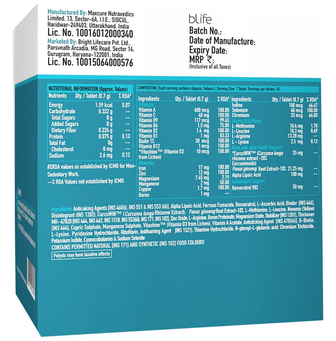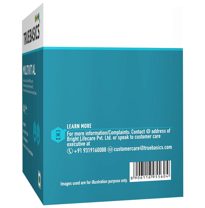 TrueBasics Multivit AL Tablet, Multivitamin for Men & Women contains 100% of the RDA of essential vitamins and minerals. It helps meet the daily nutritional requirements of the body. It is goof for energy, immunity and stamina. It is formulated with a blend of herbal extract and micronutrients, keeping in mind the health needs of men and women. It contains clinically researched ingredients and it contains an amino acid blend, a bone and joint health support blend, and an antioxidant blend. It also contains CurcuWin (Curcuma longa rhizome extract), which has antioxidant and anti-inflammatory properties. This multivitamin supplement can help in energy metabolism by activating the enzymes that regulate energy release and storage. It may also help restore balance in the body and improve stamina
