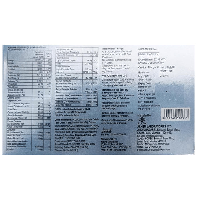 Composition : Green tea extract,Gingko biloba extract,Grape seed extract,Ginseng extract,Managanese sulphate,Folic acid,Vitamin D3,Vitamin B12,Biotin