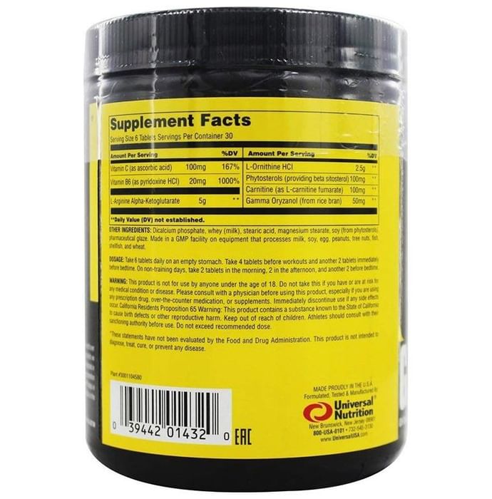 Universal Nutrition GH Max TabletUniquely formulated with nutrients and high-end ingredients, Universal Nutrition GH Max tablets are meant especially for powerlifters and bodybuilders. It helps in the development of lean muscles by stimulating protein synthesis and reducing the breakdown of muscle protein. This supplement minimises muscle catabolism by intensifying nitrogen retention in the muscles.